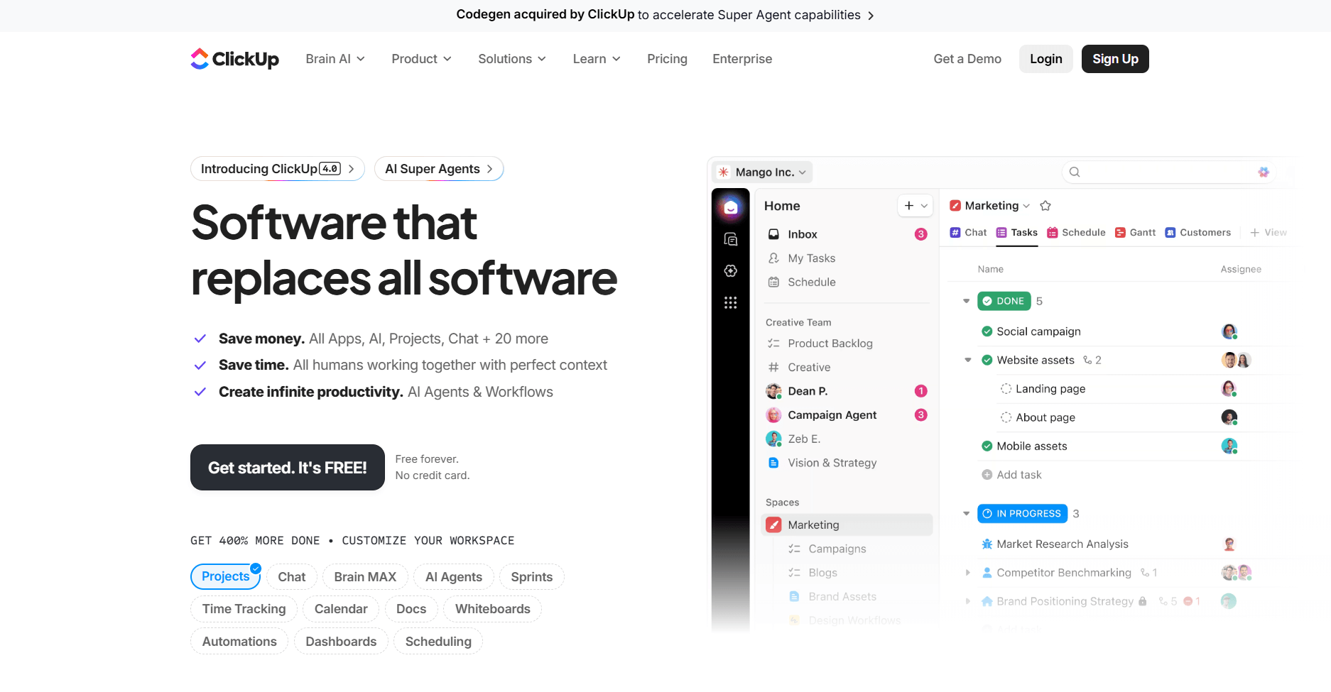 - ClickUp if you need detailed task control with custom fields and want to organize work across complex project hierarchies.
